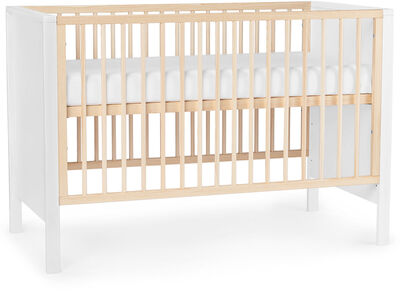 Den har høye sider og kan ha regulerbar bunn eller sengegjerde. En sprinkelseng kan brukes fra barnet er. Luksuriøs og fantastisk fin sengehimmel i naturmateriale av 1 lin der en vakker volang bølger seg mykt langs. Nesten ubrukt sengehimmel til å ha over sprinkelseng. Med stativ som står på gulvet.